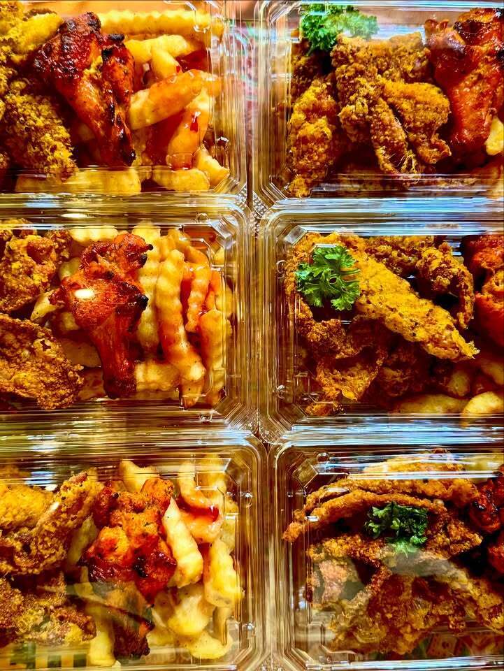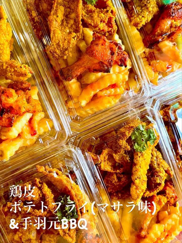 カリカリに揚がった鳥皮に、大人気マサラ味のフライドポテト、タンドールで焼き上げた炭火が薫る手羽元BBQが入った